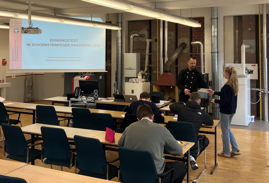 Am 20. März 2026 wurde an der Bildungsstätte des Schornsteinfegerhandwerks in Eilenburg ein Einstellungstest für angehende Schornsteinfeger durchgeführt. Insgesamt stellten sich 18 motivierte Teilnehmer aus drei